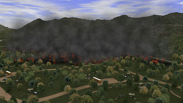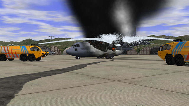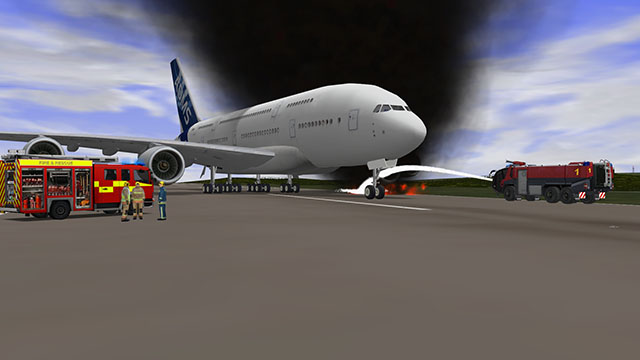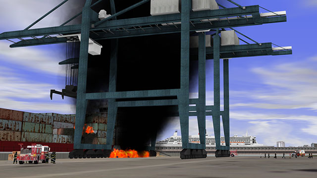 The physics-based simulation makes the fires, smoke and hazardous materials behave as they do in real-life, and the crews and bystanders behave realistically due to the embedded artificial intelligence.